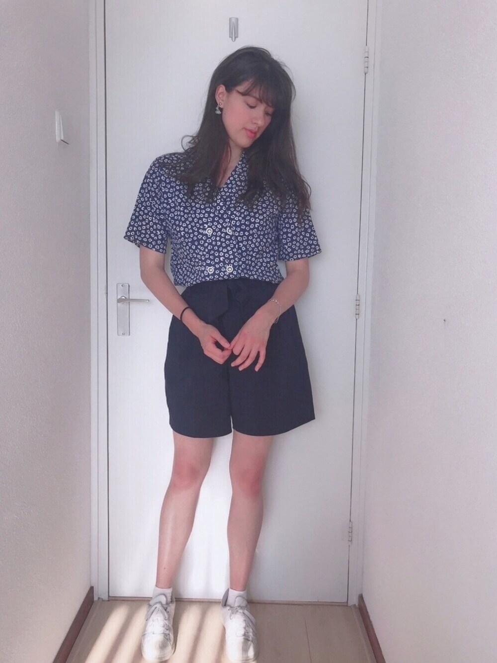 ご覧いただきありがとうございます! いつもいいね、SAVE、コメントやフォロー本当に嬉しいです😊❤️ 今日はとても暑かったので、夏らいコーデです☀️ 青と白のヒョウ柄?シャツは古着屋さんで見つけ、購入しました! ではでは💕👋 Instaでも投稿しています ↓ @nina_metz_wear 🐨