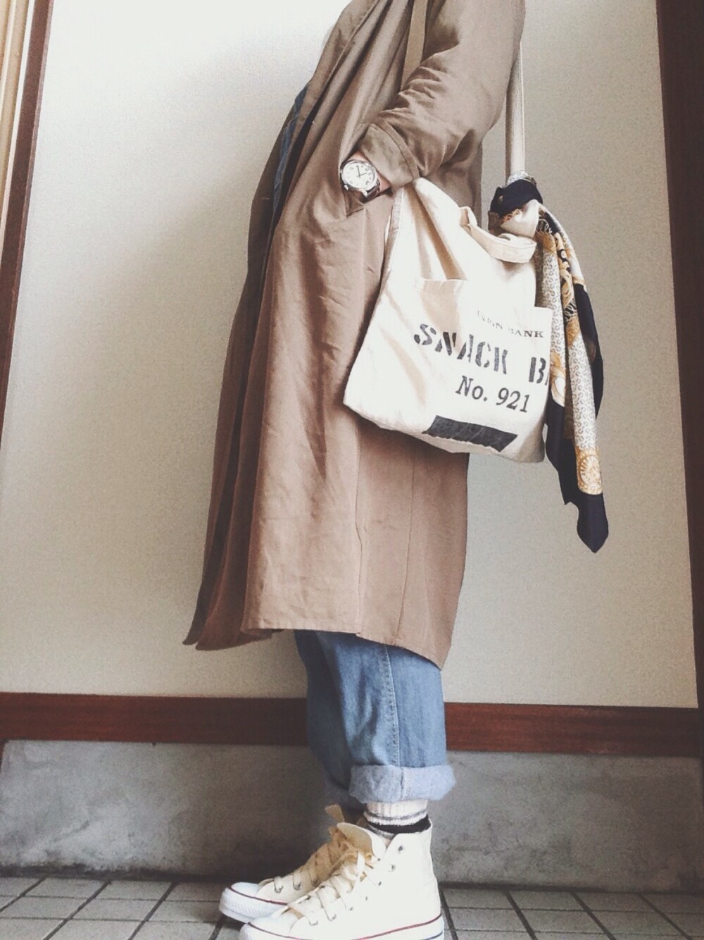 白コンバース♡ ドンピシャな古着屋さんで見つけたビンテージスカーフ♡ プチプラな2WAYトート♡ 春、ようやくはじめました。笑