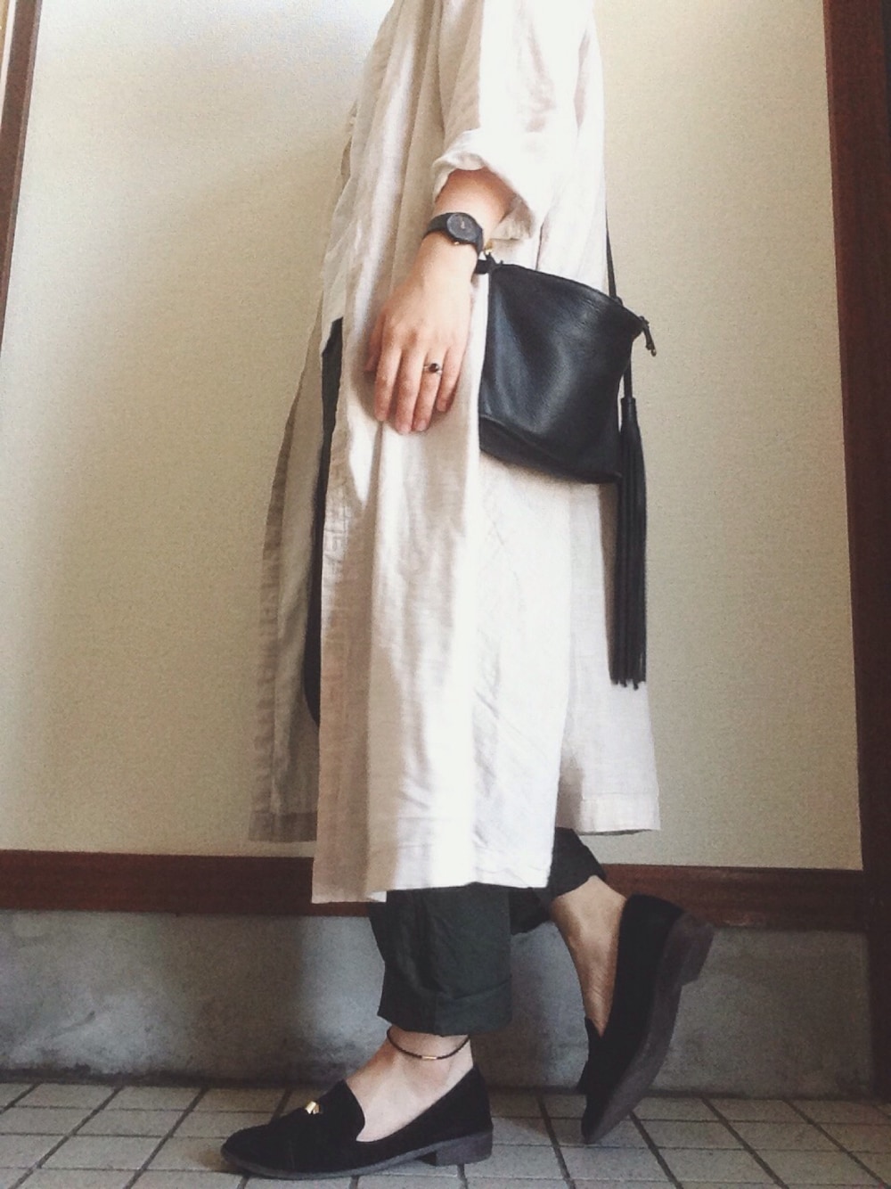 シャンブル企画第三弾。 シャツワンピ。 はい、ワンピ三枚買いました😂 これは裏表どっちでも着られるワンピでもちろんこうやって羽織にしてもいけるからコスパいいんだよ、うん。(言い聞かせる) シャンブル企画あと一回で終わるんで安心してください。笑って許して。 リュックも迷ったけど今日はお友達とランチするからちょっとレディーな小さめ👜で。