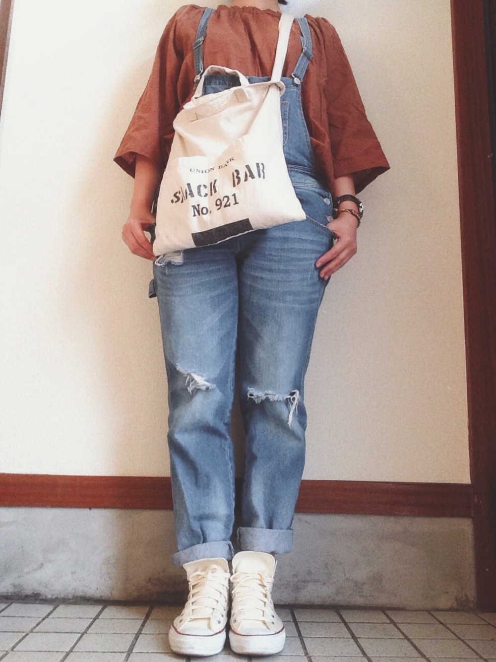 ブラウンアイテムに目がいく今日この頃…🙈 頭にスカーフ巻き巻き🌀