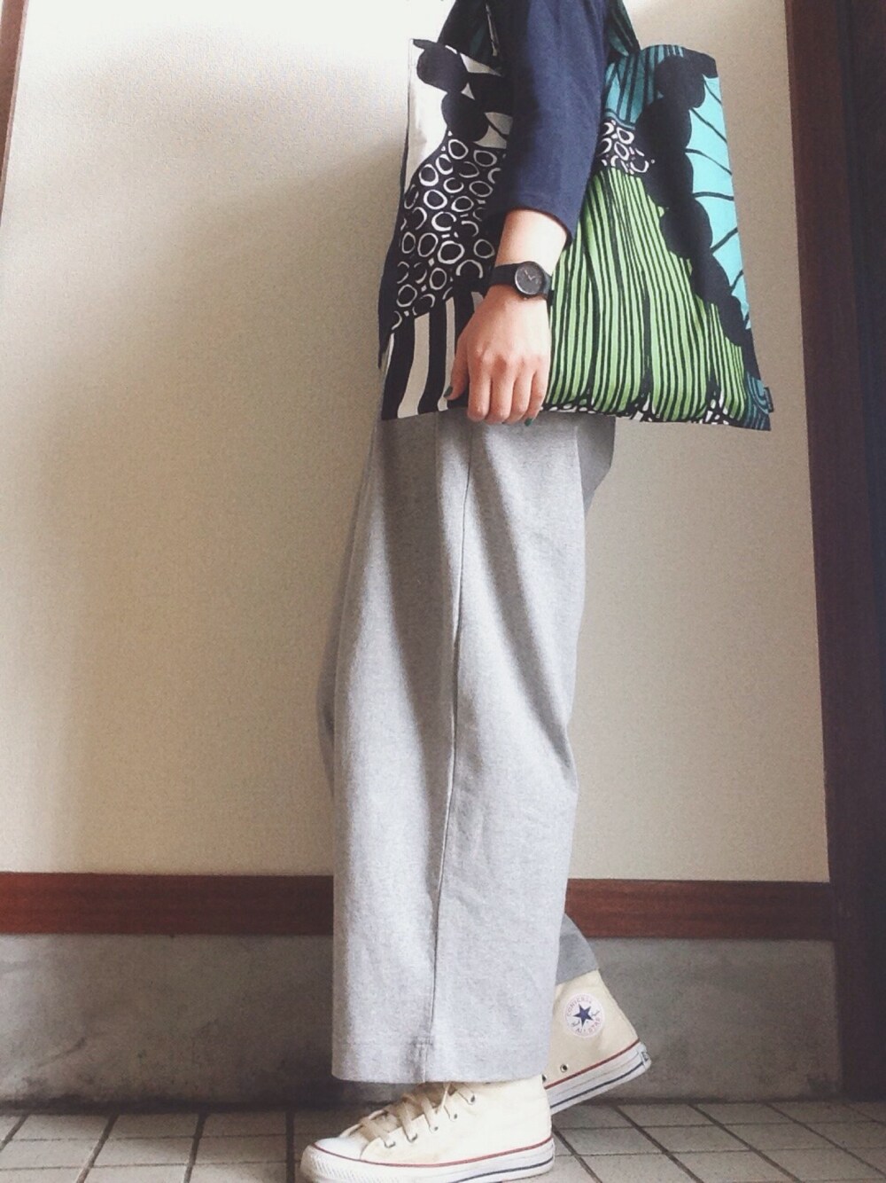 おニューアイテム2つ♡ 一つはcoenのワイドパンツ!こちら想像以上にワイドでいつもLサイズ頼む私ですがMでもよかったかも。スエット素材で最高な着心地とシルエットが😻 そしてなんといっても2つ目はお洒落エンジェル👼KOROちゃんの影響を受け過ぎて即検索andポチしたマリメッコのトート♡♡♡(勝手に名前だしてごめん🙏) やばい!可愛すぎる。しばらくこればっかり持ちます宣言です🙋
