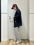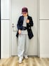 ご覧頂きありがとうございます! 金ボタンがかわいいダブルジャケットに ボーダーを合わせたマリンスタイルに しました。ボトムスのスウェットパンツは Sonny Labelです