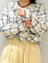 ご覧頂きありがとうございます! やわらかなコットン素材を使用し、肌なじみが良くデイリーに取り入れやすい一枚に仕上げました。 程よく甘めなデザインながら、ベースはナチュラルカラーで統一することで大人っぽさも演出。 カラーはブラックとブルーの2色展開で、どちらもコーディネートに馴染みやすい配色です。 一枚で可愛く着こなせるのはもちろん、カーディガンやサロペットのインナーとしても映えるアイテム。 ボトムは かぐれのコットンリネンボリュームパンツ 履き心地◎程よいボリューム感てシルエットがかわいいパンツです!