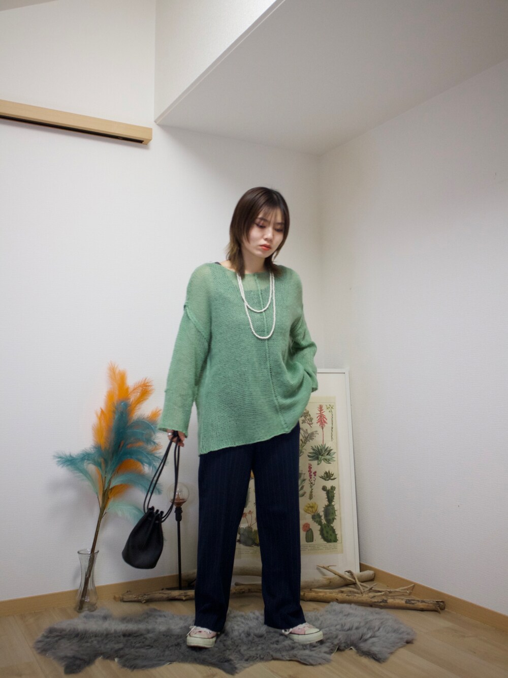 本日も見ていただき、有難うございます🙇🏼♂️💕 まだ寒い時期もありますが、シースルー系が着たくなります🤟🏻 薄手のニットはどこか大人チックに見せれるので好きなんです🤔💕 Instagramもやってるので是非🙏🏻 @b__03_napus