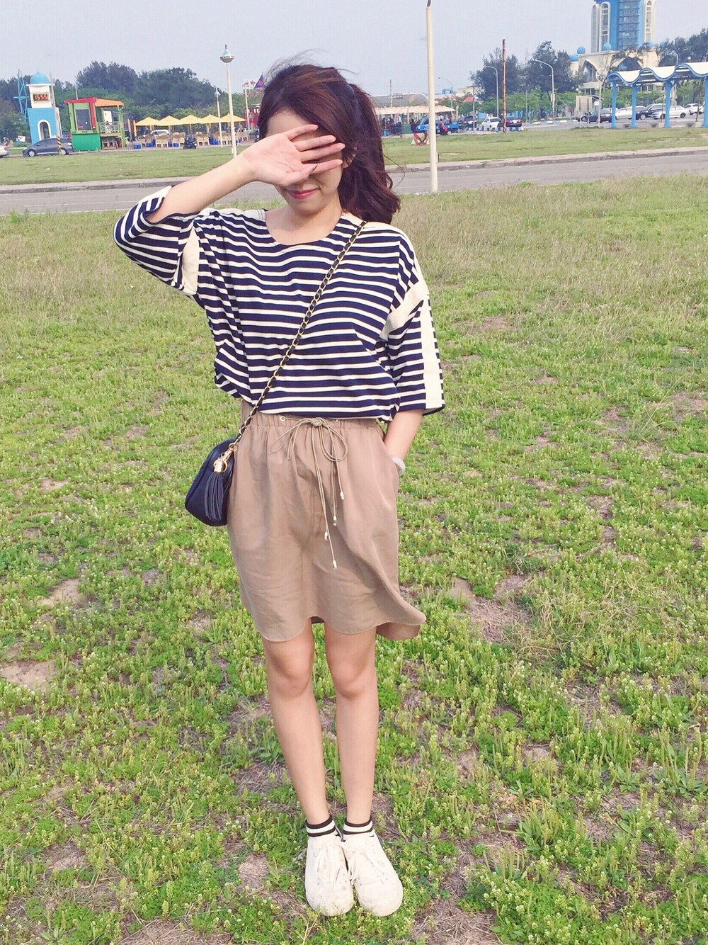 ホワイト系のスニーカーを着用したレディースの春コーディネートの1枚目の写真