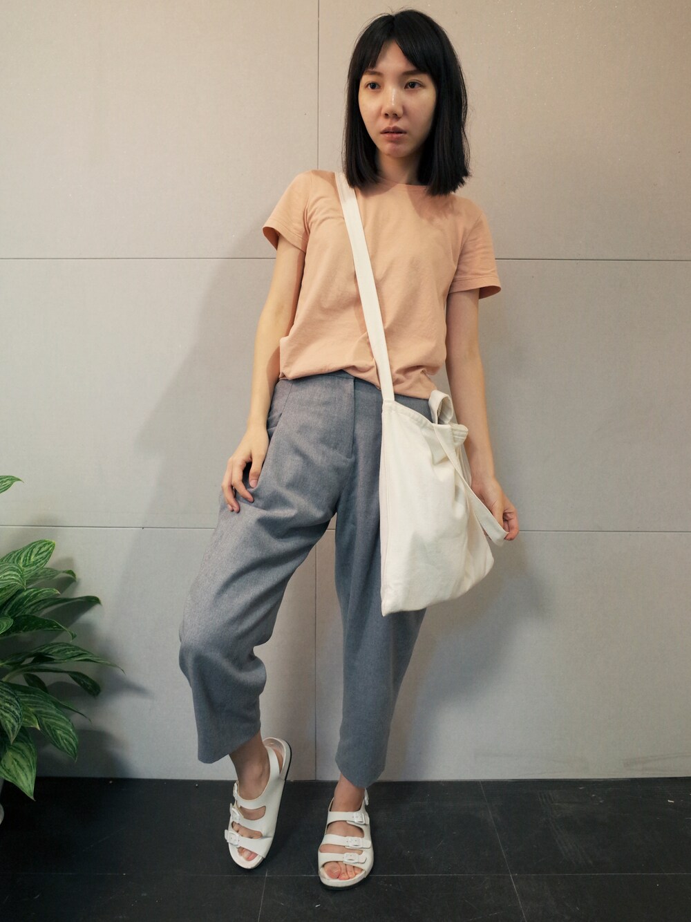 張寧ningのスラックス「灰色西裝褲」を使ったコーディネート