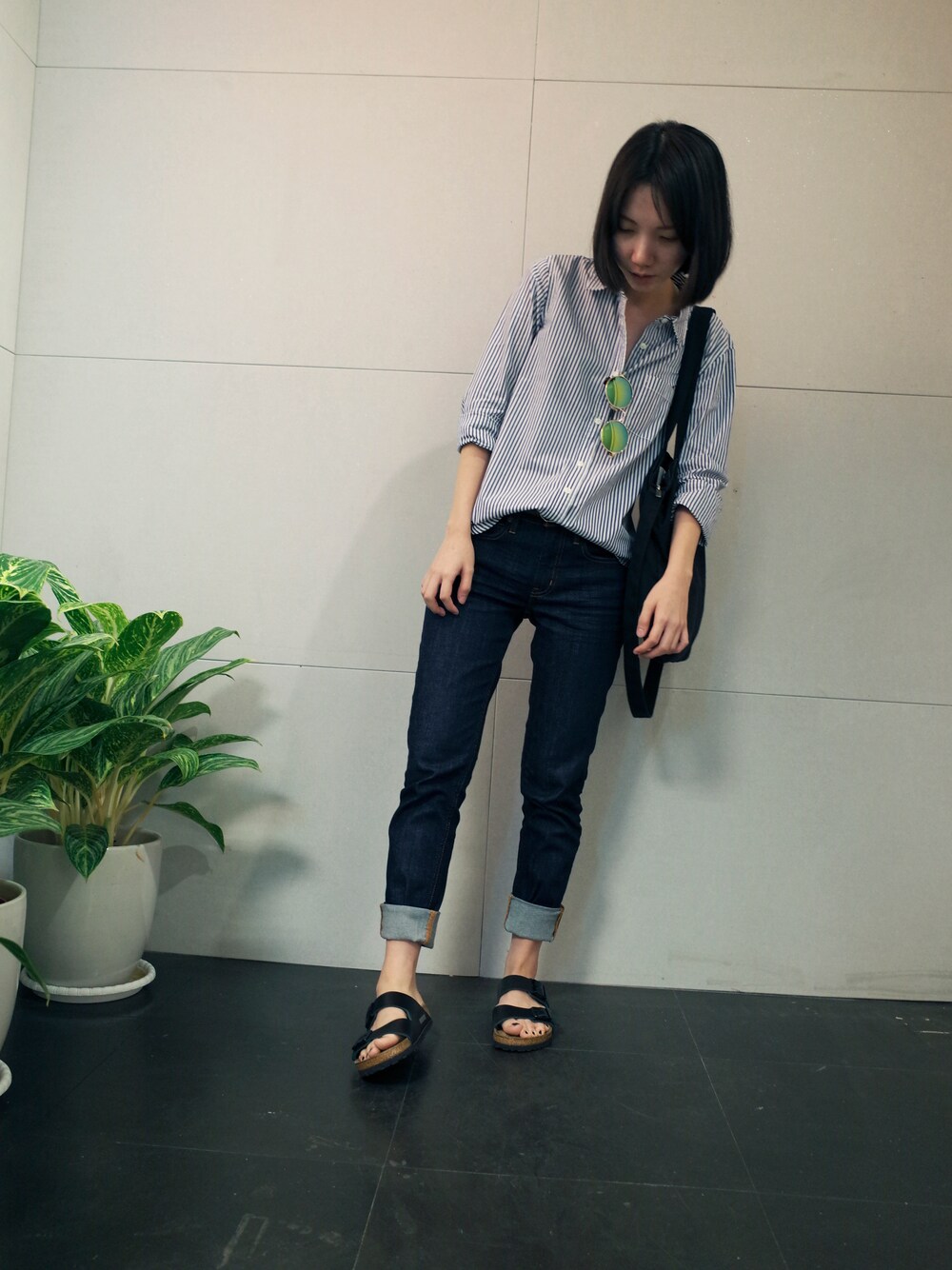 襯衫top/GU 牛仔褲pants/MUJI (勃肯 帆布包 墨鏡 黑色指甲油)