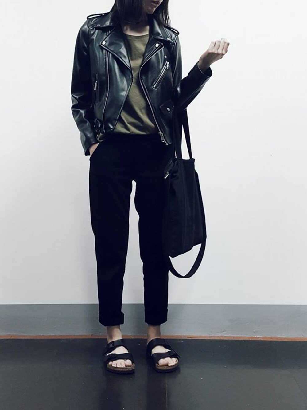 皮革外套/zara 西裝褲/zara 勃肯鞋 #leatherjacket #bikerjacket #jacket #autumn #ootd