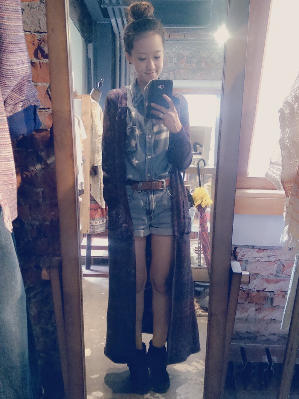 今年一定要來一件特別的長版針織外套!! 上下身都選擇牛仔系列,馬上多了休閒時尚感, 鞋子就選短靴加雙可愛的襪子吧~