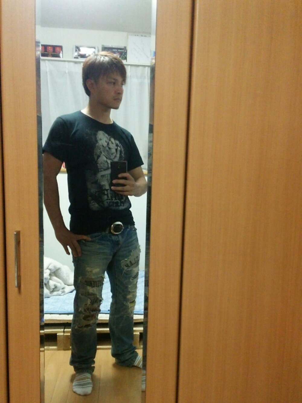 K-37のデニムパンツ「CPR加工デニムストレートスリムPT」を使ったコーディネート