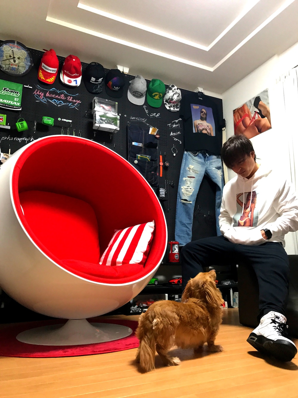 この前の日曜は大阪に行ってました^_^ ルクアにあるヒステリックグラマーにお邪魔してお相手していただきました(*^ω^*) 出掛けて各地のヒステリックグラマーに行くのも楽しいですね〜 次は他の店舗に行くかな♪ 今回は服とか買う予定もなく空いてる時間にプラプラしてたのですが、あるショップの前を通った時になんとSENSE表紙のパーカーがあった! 表紙見た時に自分好みやなと思いつつ特にブランドや値段は確認してなかったのですが気になってたので店に入り試着! 自分に合うサイズが1着だけ! しかもホワイトのパーカー! ヤバいやん!と思いつつ値段聞いたら・・・64800円! マジか!高すぎるやん!と定員に向かって言ってしまった(笑) でもカッコいいし好きな感じやから1時間近く喋りながら考えて結局買ってしまった( ̄▽ ̄;) パーカーに6万オーバーは初やわ(^_^;) でもこれからの季節に役立つな! 綺麗に長く着るぞ! という事もあり衝動買いは辞めなきゃな・・・ そんな1日でした(笑) インナーは見えないけどお気に入りのヒス×PLAYBOY! これから節約しますか〜
