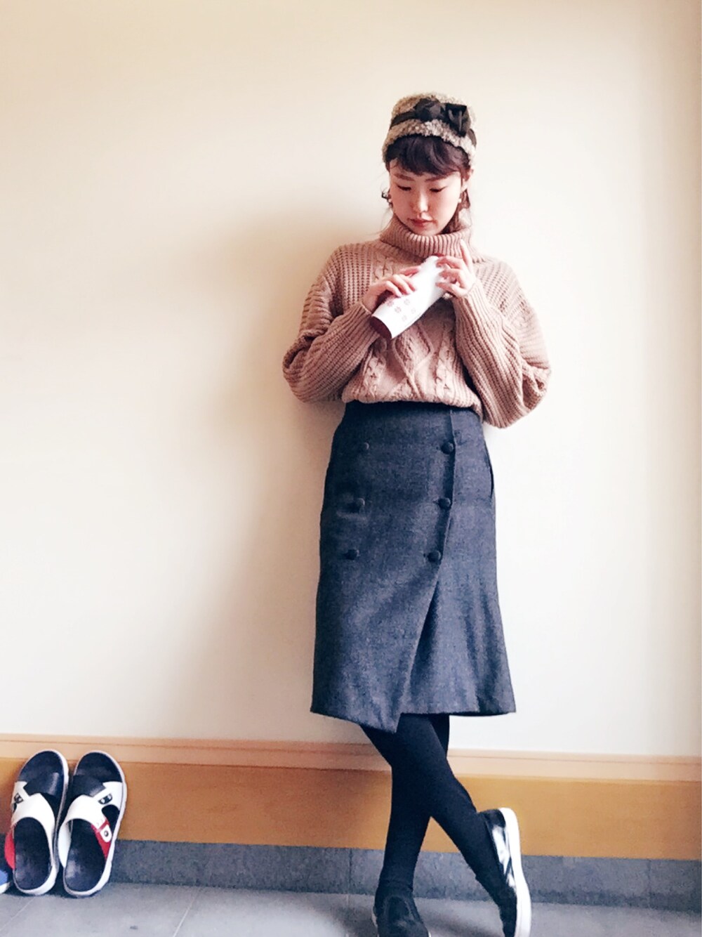 2がつ8か アシンメトリーなスカートに お気に入りのケーブルニット ニットも今月中に沢山着ておかないとですね〜!