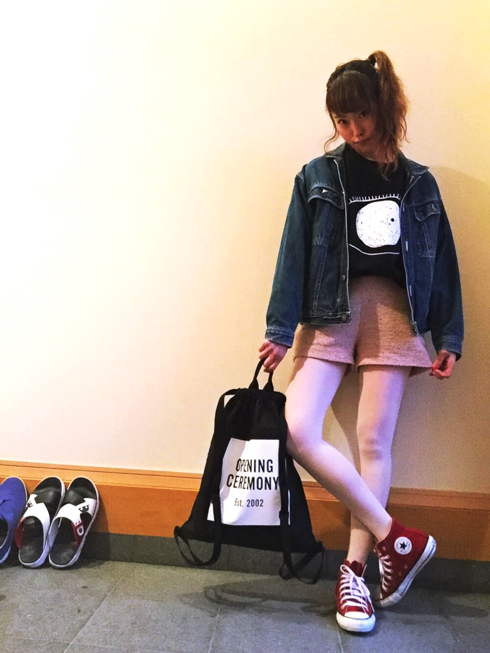 2がつ28にち 今日は珍しい 一昨年に衝動買いしておきながら全然はかないショートパンツを引っ張り出しました 白タイツにピンクのパンツと甘い色なので甘くなりすぎないように 別に甘くなっていいんやけど、、笑 今日は美容院に♪