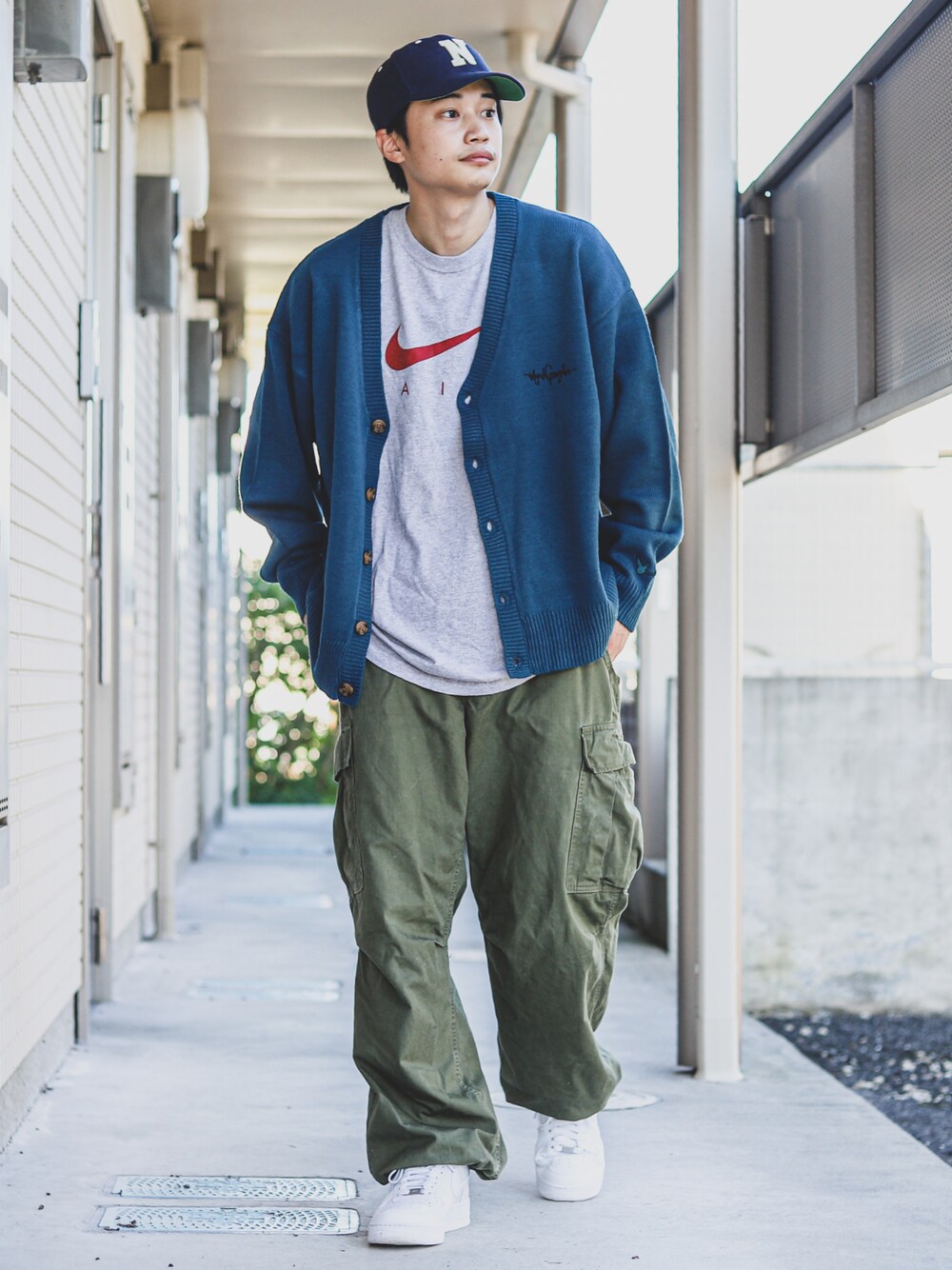 すけのカーディガン/ボレロ「Mark Gonzales/マークゴンザレス MONO-MART別注 ロゴ刺繍 ビッグシルエット ボリュームニットカーディガン」を使ったコーディネート