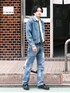 Levi'sの復刻デニムジャケット POLOのネクタイと白シャツ 原宿の古着屋Sebastianの Levi'sのリメイクパッチワークデニム Clarksのワラビー 💮💮💮😮💨😮💨😮💨
