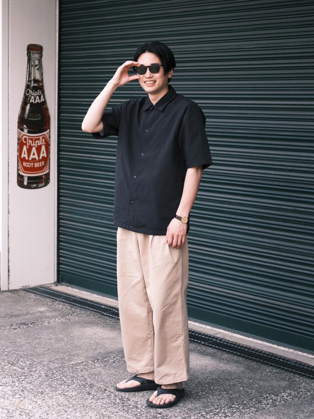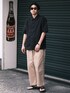 夏らしい半袖シャツコーデ◎ シャツをメインに 小物も黒でまとめてスッキリ◎ 【トップス】 nano・universe Supplex Nylon レギュラーカラーシャツ カラー:ブラック サイズ:Sサイズ
