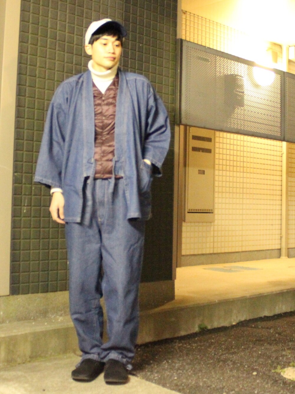 ユニクロのタートルネックとインナーダウン。 あったかいけど着膨れしませんね。 セットアップと言っていいのか 上下作務衣を合わせました。 キャップとビルケンでこれまた楽にいきましょ〜😉