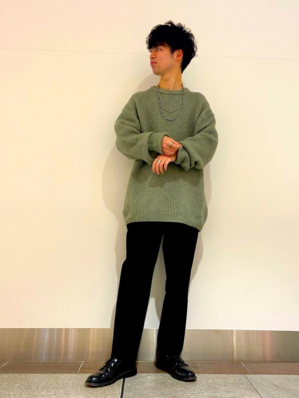 トップスとパンツのバランス抜群‼︎ 今年はカジュアルスタイルに革靴や艶があるドレスアイテムの落とし込みがオススメ◎