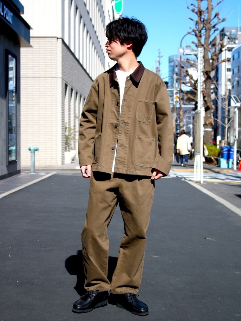 ブラウントーンのセットアップコーディネートは、野暮ったさがでやすいですが革靴などでメリハリをつけるのがオススメ◎