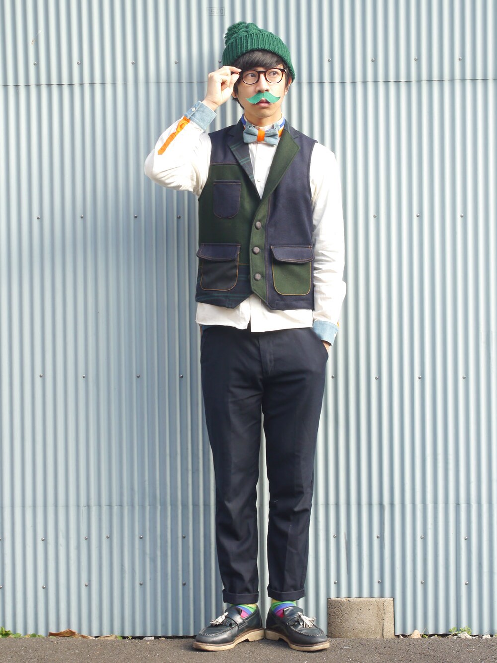 ウール素材ぬくぬくベスト。 ネイビー×グリーンが好物です。 喋ります。 猫が好きです。近所の野良猫をいつも追い回しています。もしかしたら、追い回しさせれているのかもしれません。たらしです。人間たらしです。凄い可愛い猫いつか小窓にUPしたるねん。 あっぷっぷこと NIRAME.COデザイナー より。