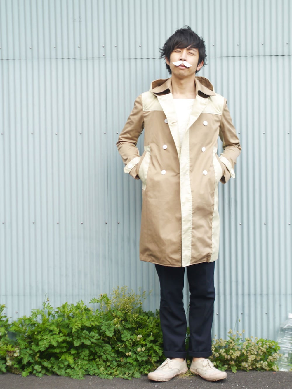 フード付きロングピーコート ベージュ色はトレンチ風に。 喋ります。 猫よけペットボトルの横におりますのは、愛すべき猫様に注意喚起を促す役割を、かって出ている訳であります。相思相愛であります。 あっぷっぷこと NIRAME.COデザイナー より。