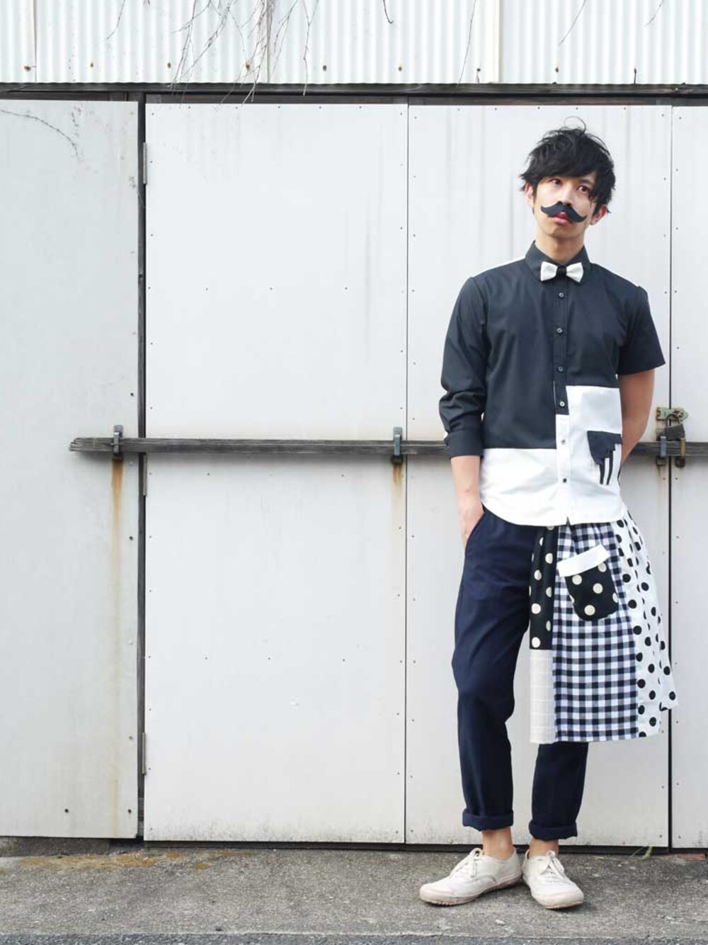 「学校の階段しゃつ。いいますの。」 ほら、だんだんだん。って 階段みたいになってますの。 学校の怪談って表現が怖いかなって思いましたけど 腰巻にスカートを使用して 一人で写真撮ってる時間も、中々の怪談ですね。 これからの時期、腰巻スタイルって出てきますけど スカートは男性アイテムにない、ボリュームとか出るし 結構、スチール撮影には重宝出来るんす。 さぁ新しい階段を上がってみようじゃないですか。 こほん。 こほんこほん。 あっぷっぷこと、 NIRAME.COデザイナー より。 【真面目にフザける】をコンセプトとし、 デザインに遊び心!! 作りに日本の職人が一着一着を手作りする。 そんな NIRAME.COの世界観をお楽しんで下さい! 「NIRAME.CO」でHPもありますよ~ 載せきれない洋服達もありますので お店にも是非遊びにこられて下っさ~いっす。