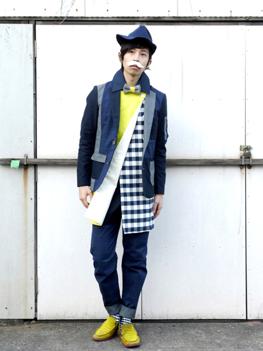 あっぷっぷのピーコート「気まぐれロングピーコート ネイビーチェック」を使ったコーディネート