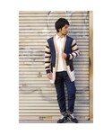 あっぷっぷのテーラードジャケット「扇JKT ネイビー×ストライプ」を使ったコーディネート