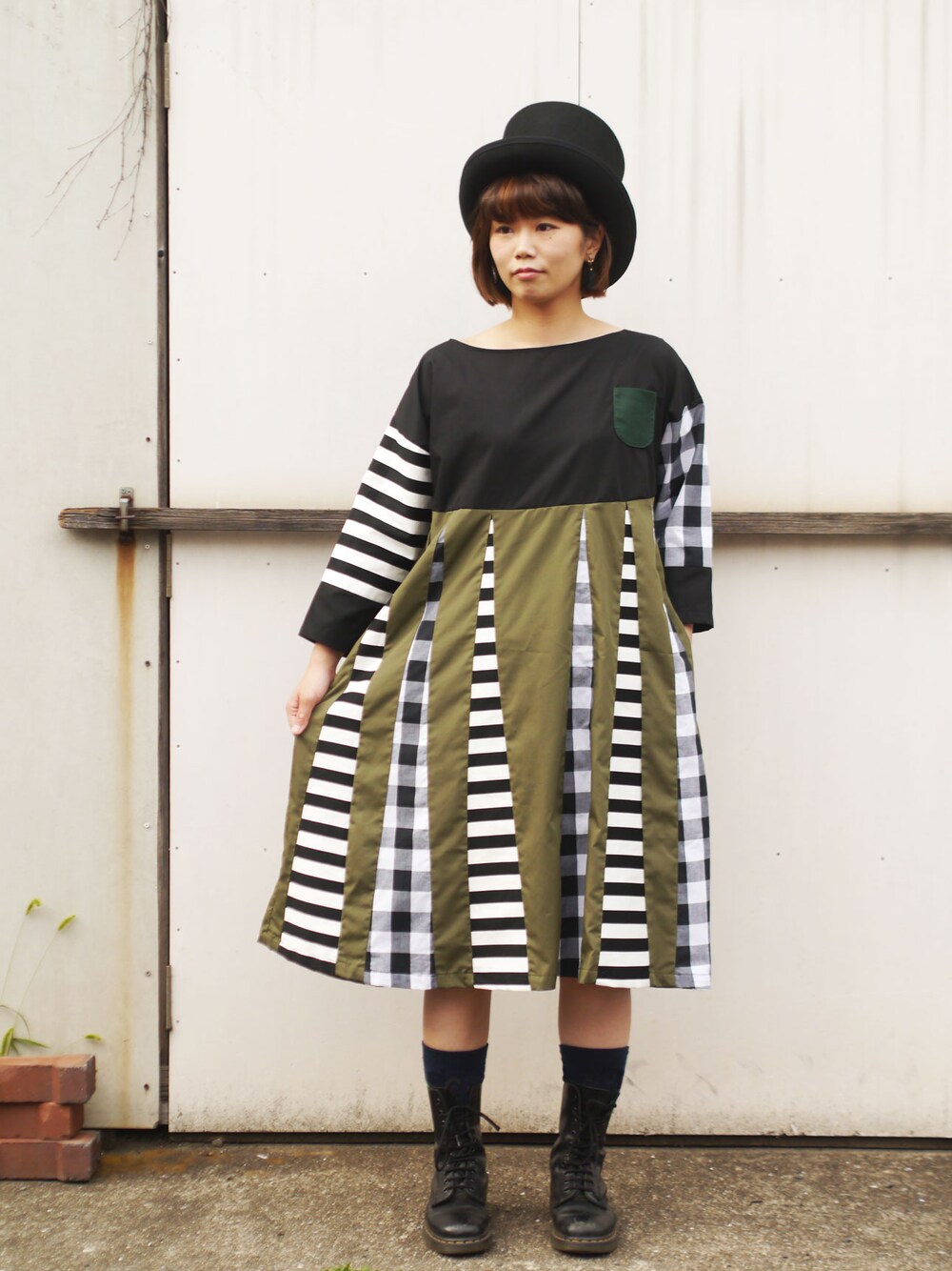 NIRAME.COのワンピース「めれんげワンピ ~カーキ×モノトン~」を使ったコーディネート