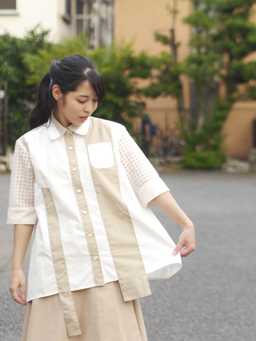 NIRAME.COのシャツ/ブラウス「あみどシャツ」を使ったコーディネート