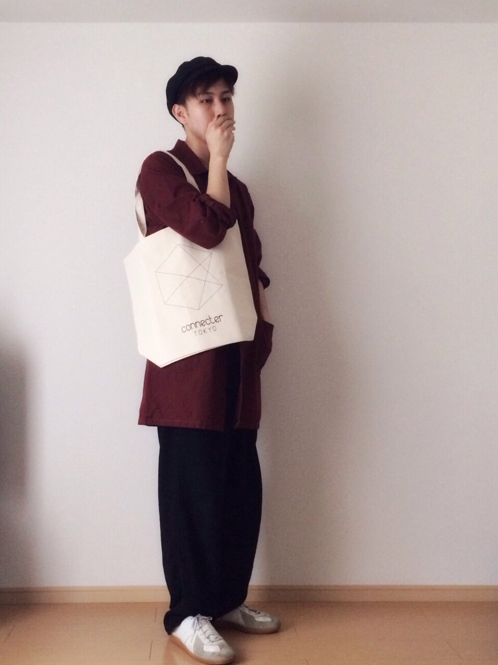 connecterのトートバッグ。スーパーの買い物で使います。 やっぱりクーラー苦手なので羽織り物必須です。 最近ヨージのパンツばっかり。