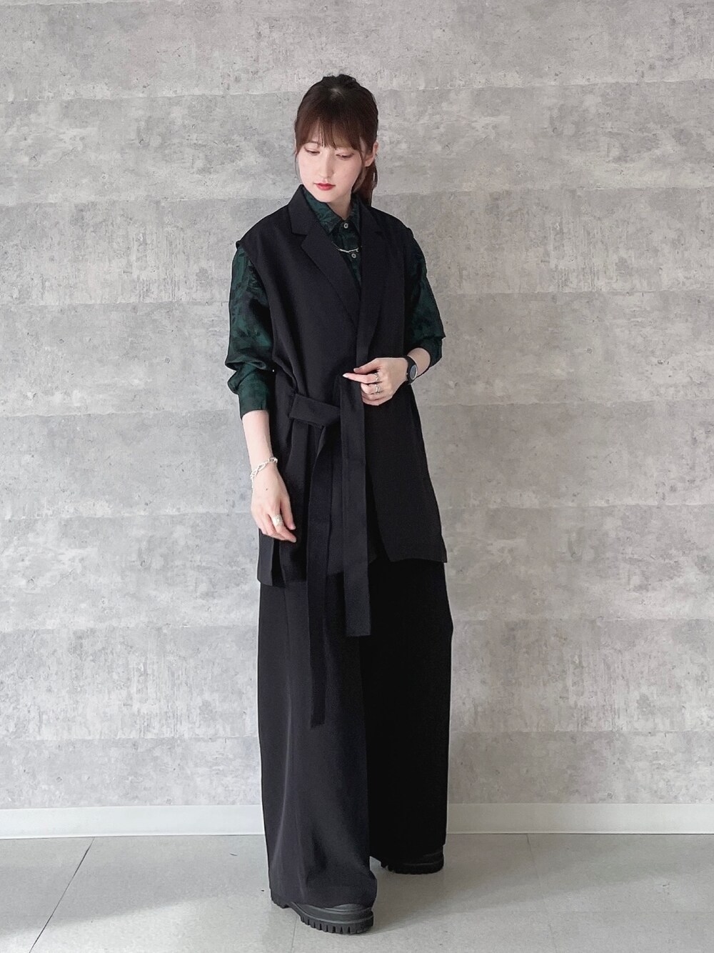 モードな秋コーデ。 全体をゆるっとしたシルエットで仕上げました。差し色のグリーンがお気に入りです。