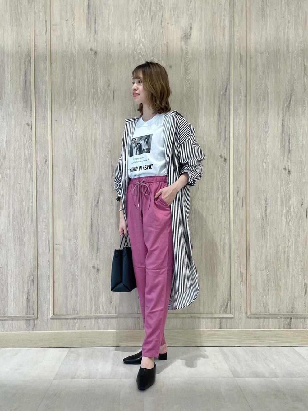 【身長】 163cm 【普段のサイズ】 トップス/36(S) ボトム/36(S) シューズ/23.5cm(M) 【サイズ感】 ワンピース:標準的 トップス:ゆったり ボトム:標準的 シューズ:標準的 【コーディネートポイント】 季節の変わり目に重宝するシャツワンピース。羽織っても前をしめて着てもさまになるように、ピンクのカラーパンツで合わせたスタイリングにしました♪