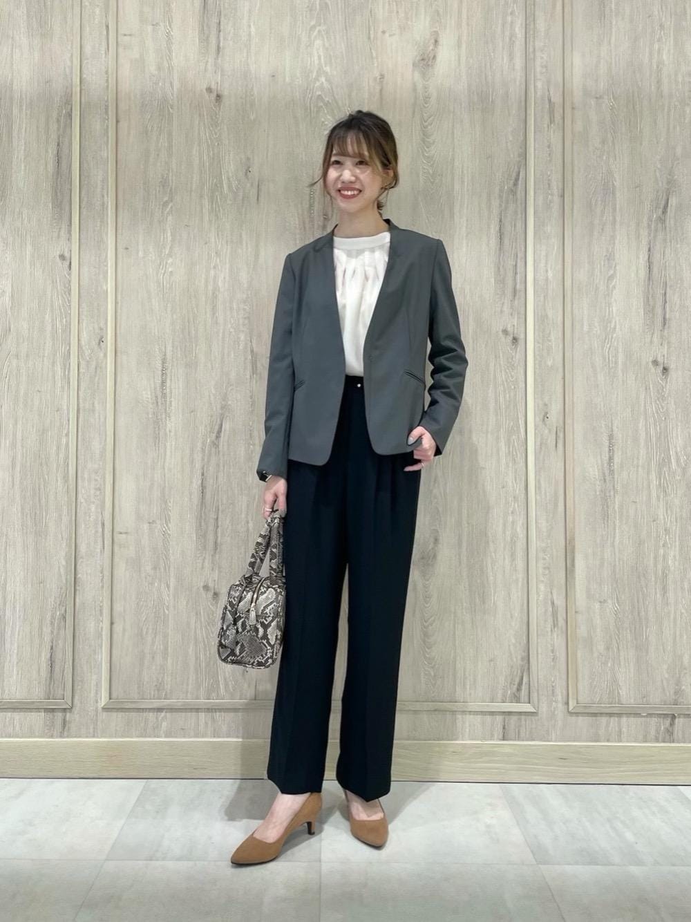 【身長】 163cm 【普段のサイズ】 トップス/36(S) ボトム/36(S) シューズ/23.5cm(M) 【サイズ感】 ジャケット:標準的 トップス:標準的 ボトム:標準的 シューズ:標準的 【コーディネートポイント】 落ち着いたトーンでまとめた通勤スタイル。セットアップで着ない場合はボトムを暗い色にしていただくとバランスが取りやすくなります◎