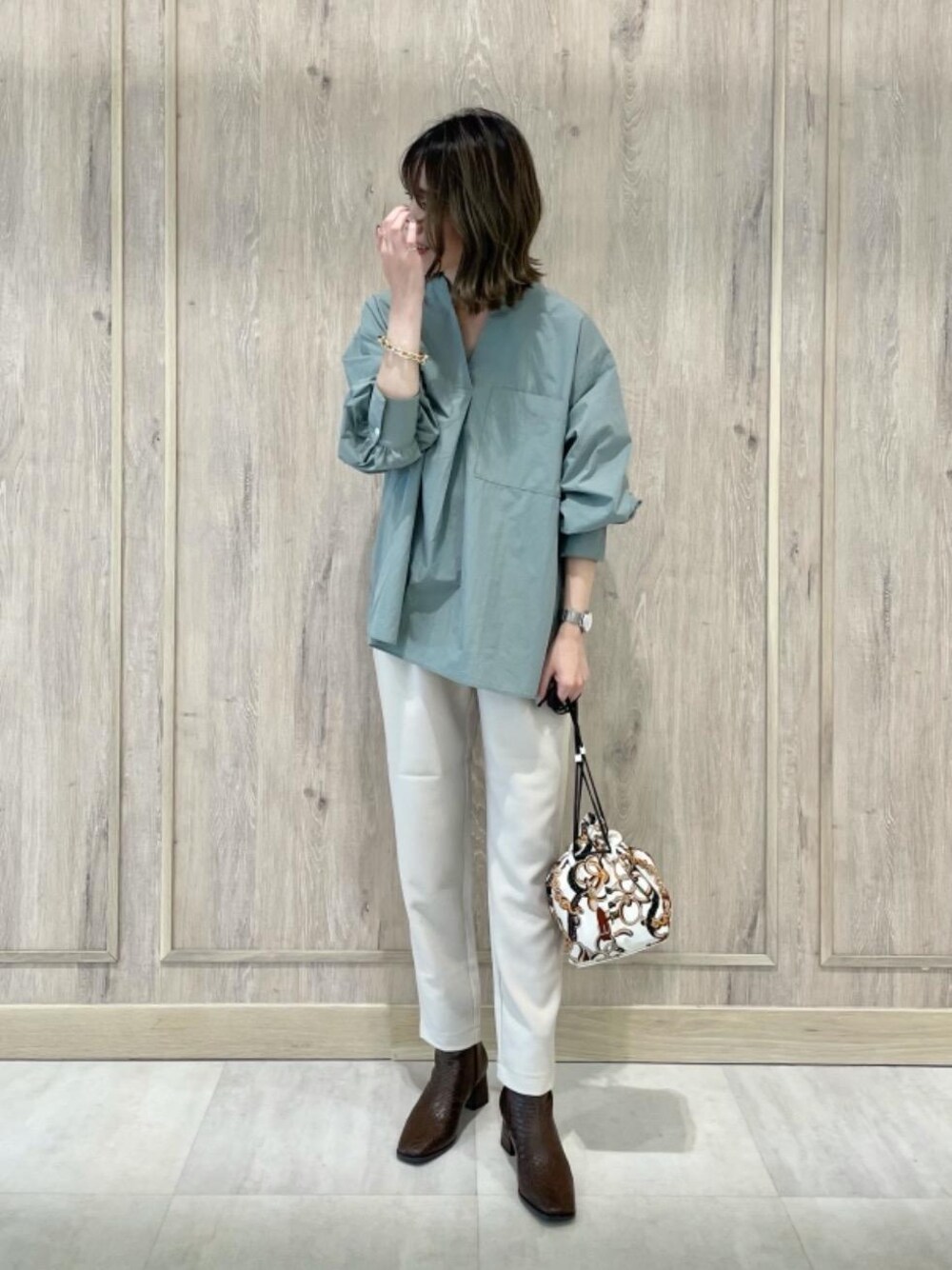 【身長】 163cm 【普段のサイズ】 トップス/36(S) ボトム/36(S) シューズ/23.5cm(M) 【サイズ感】 トップス:標準的 ボトム: 標準的 シューズ:ややタイトめ 【コーディネートポイント】 明るいカラーの組み合わせですが、ブーツや小物の素材感や色味で秋らしさを表現しました!