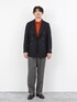 新型のダブルジャケットを使用したドレスカジュアルコーデ。 身体のラインを美しく見せてくれるシルエット。 肩〜ウエストの逆三角形のラインはスッキリとしながらも、決して窮屈という感覚ではなく、ウエストにそっと手を添えられたようなフィット感。 インナーにはニットポロ、スラックスでキレイに合わせて。 トップスはシャツにタイドアップはもちろん、ボトムスはチノパンやデニムでも。 お堅いスーツの感覚とカジュアルさのちょうど良いバランスの仕立てで、着まわしやすく、是非ワードローブに入れていただきたい一着です。 是非参考にしてみてください。 着用サイズ ジャケット:48サイズ ニット:Lサイズ パンツ:Lサイズ 身長178cm/体重64kg/ウエスト74cm