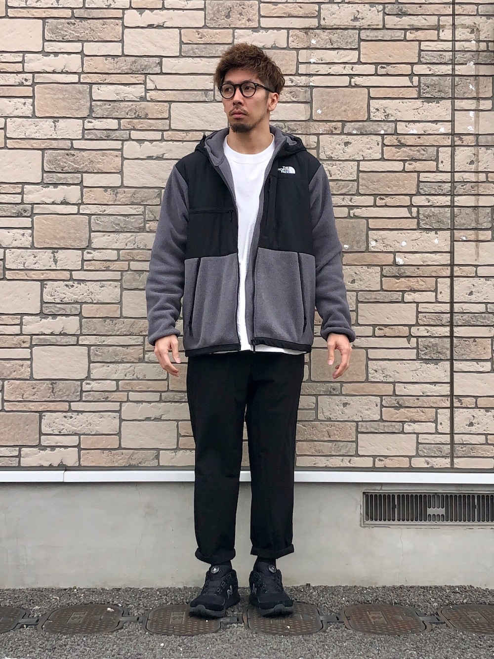 シンプルなコーデ。 白のロンTにフリースを着るだけで十分な防寒になります! 白黒グレーのコーデはいいですね!