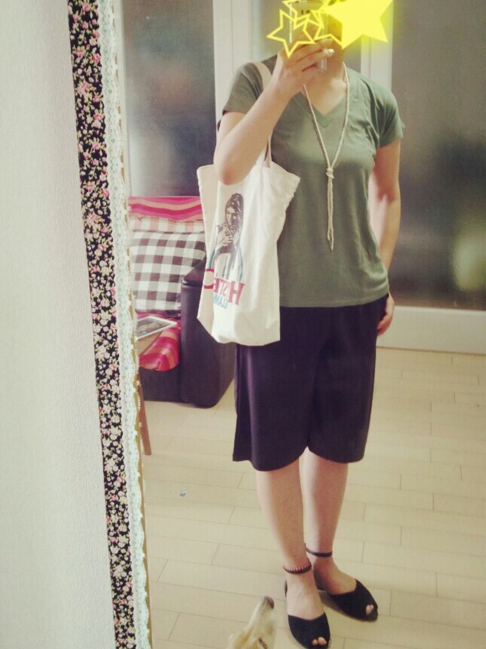 トートバッグは、ヒステリックです。 ガウチョパンツとTーシャツは、ネット通販。