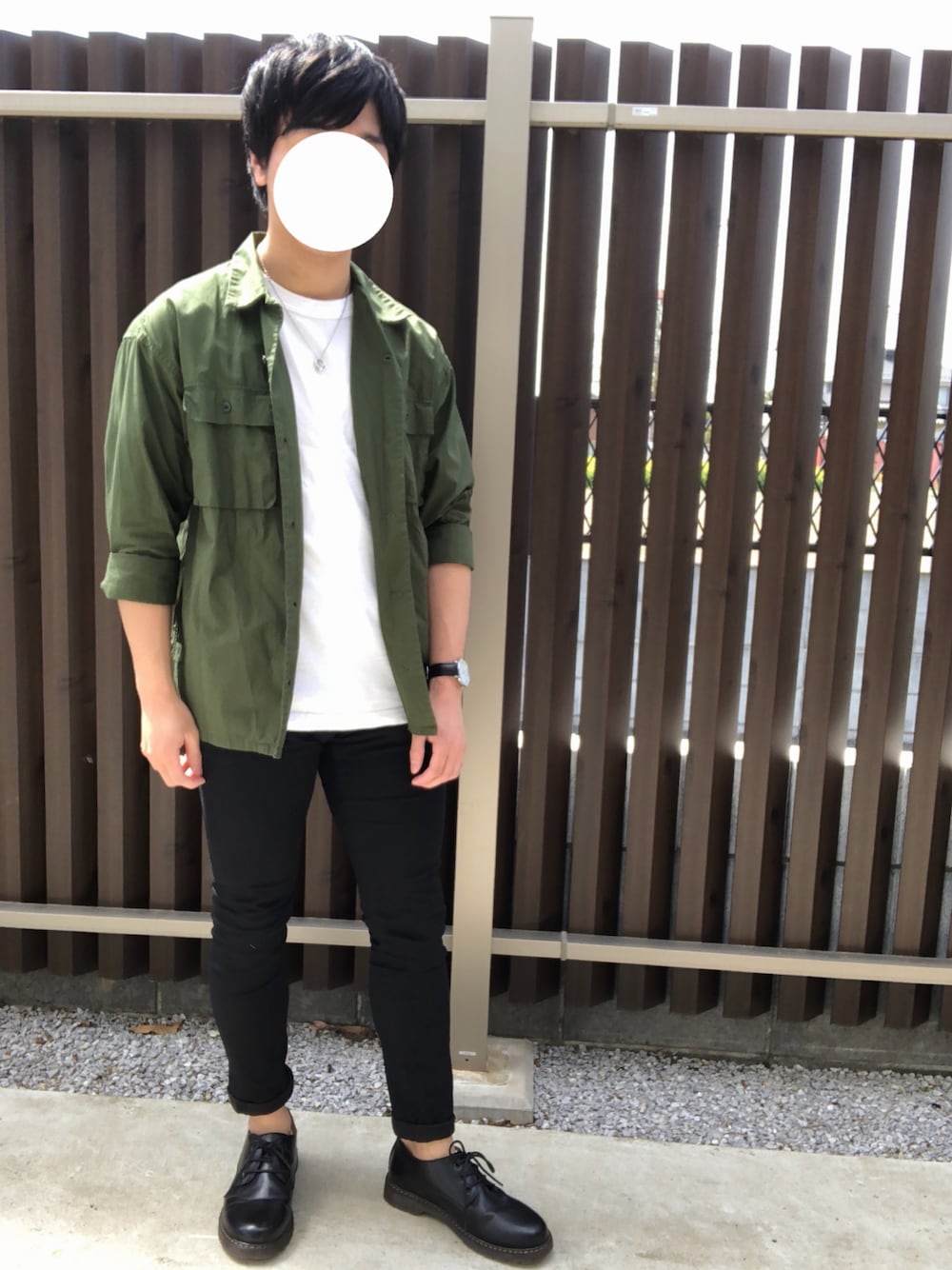 いつもいいね、お気に入りありがとうございます😉 ミリタリーシャツと白のトップスでシンプルにまとめました!スキニーをロールアップさせて春感をアップさせてみました🌸