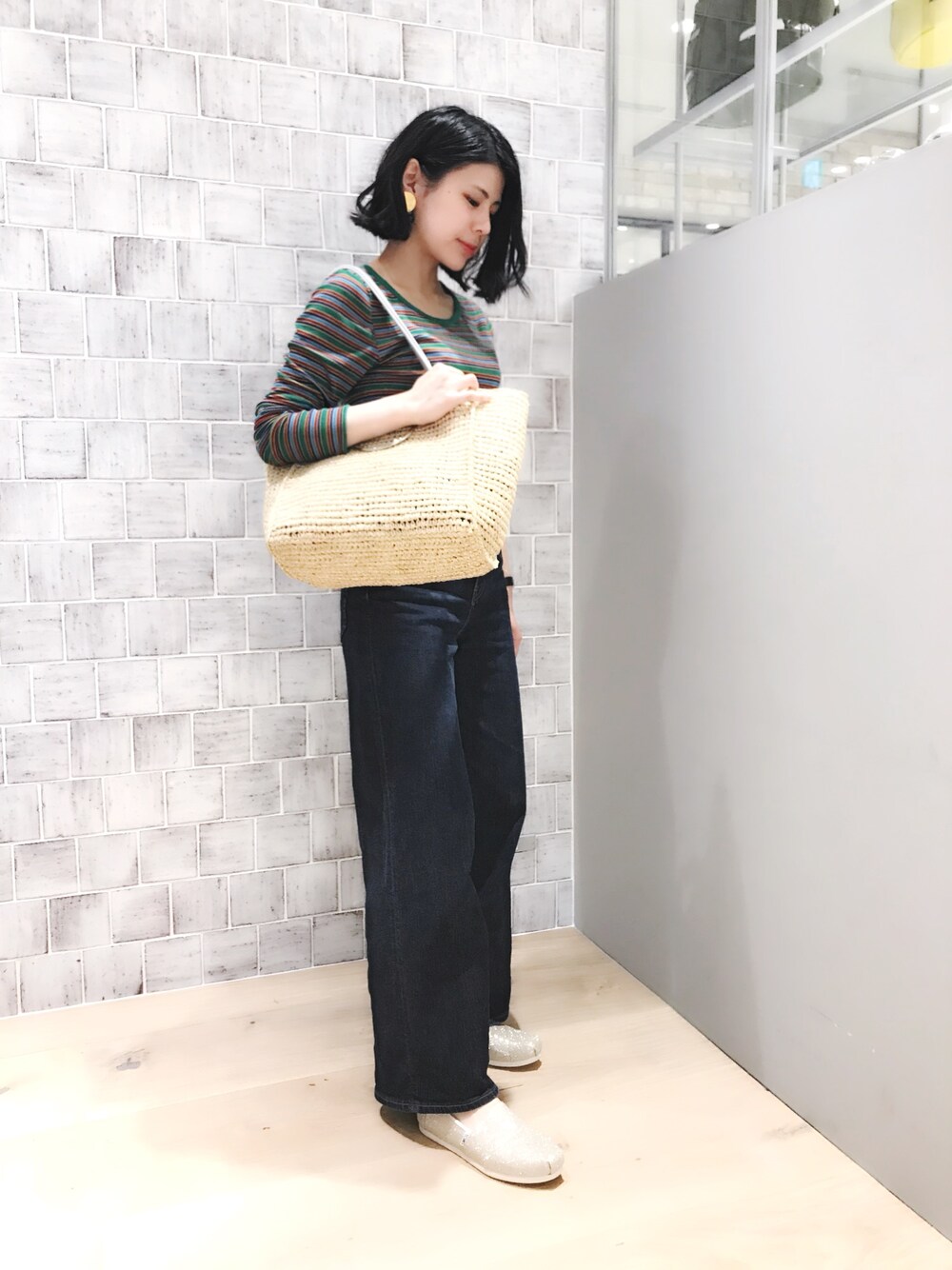 にっしーのスリッポン「【TOMS/トムス】ウィメンズエスパドリーユ-シャンパーニュグリッターメッシュクラシック」を使ったコーディネート