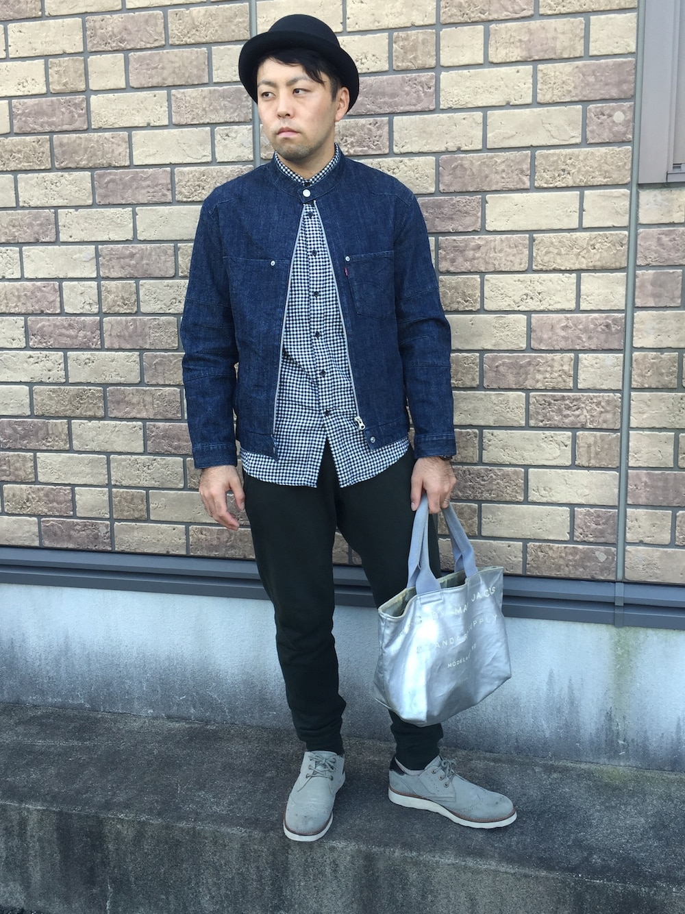 シングルライダースを上だけ止めてアクセントにしました(^^) パンツはユニクロのスウェットパンツです! 黒ぽく見えますが深緑色です(o^^o)
