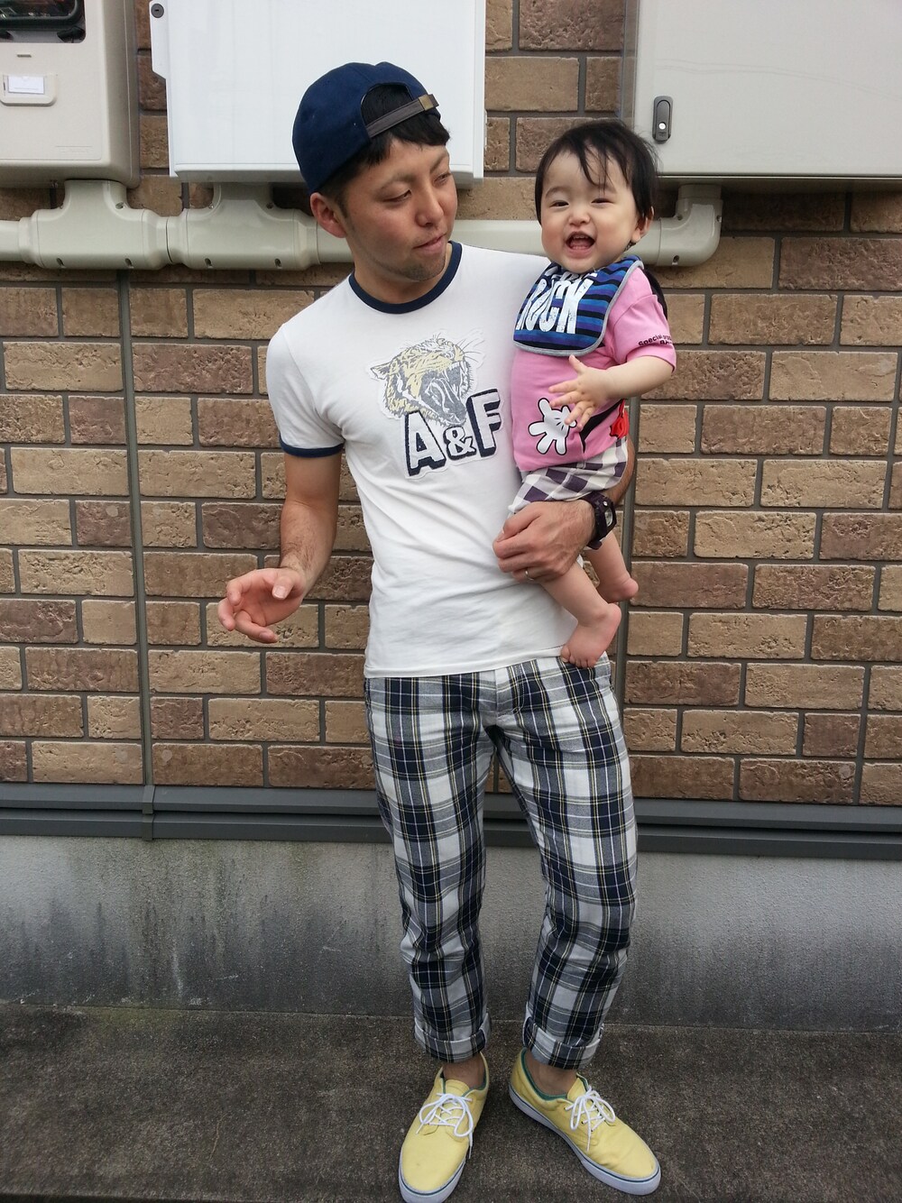 子供と一緒にどこ行こう! 的なスタイルです(^^)v このあと天気よかったので外で遊びました。 Tシャツ:アバクロ 靴:ラコステ