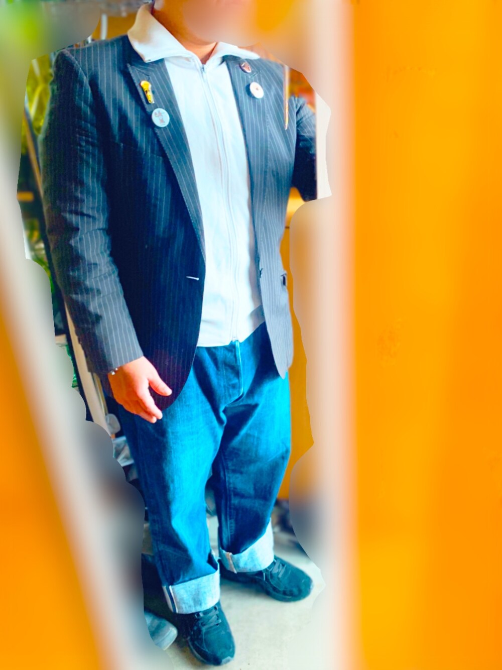 ジャージ +デニムパンツ +テーラードジャケット で全部ハズす自己満足な合わせ方(笑)