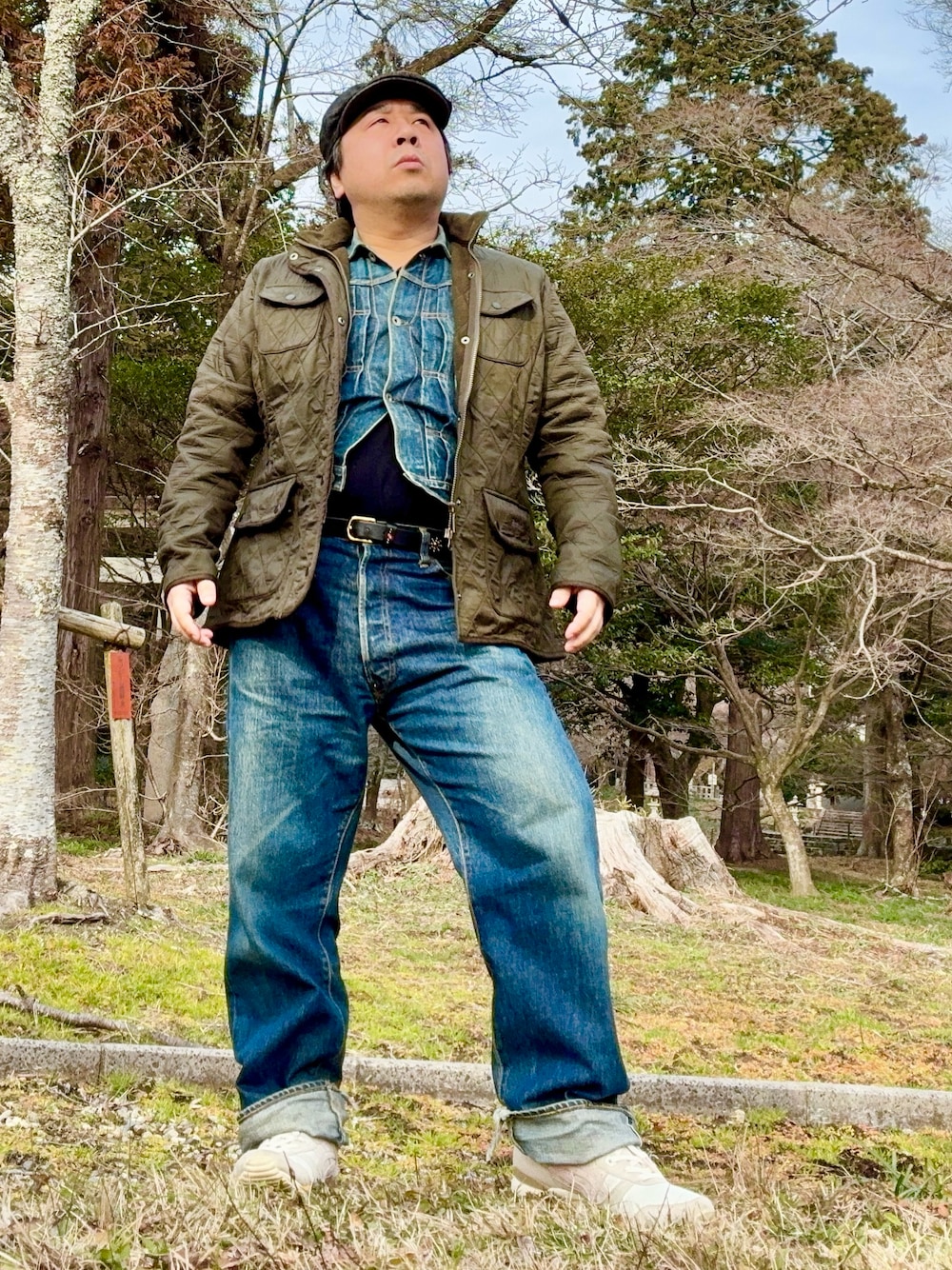 ハンチング帽とジージャンとジーパンがデニムです😄 春はすぐそこですね! ジーパンとジージャンは「EVIS」タグの年代物🤣