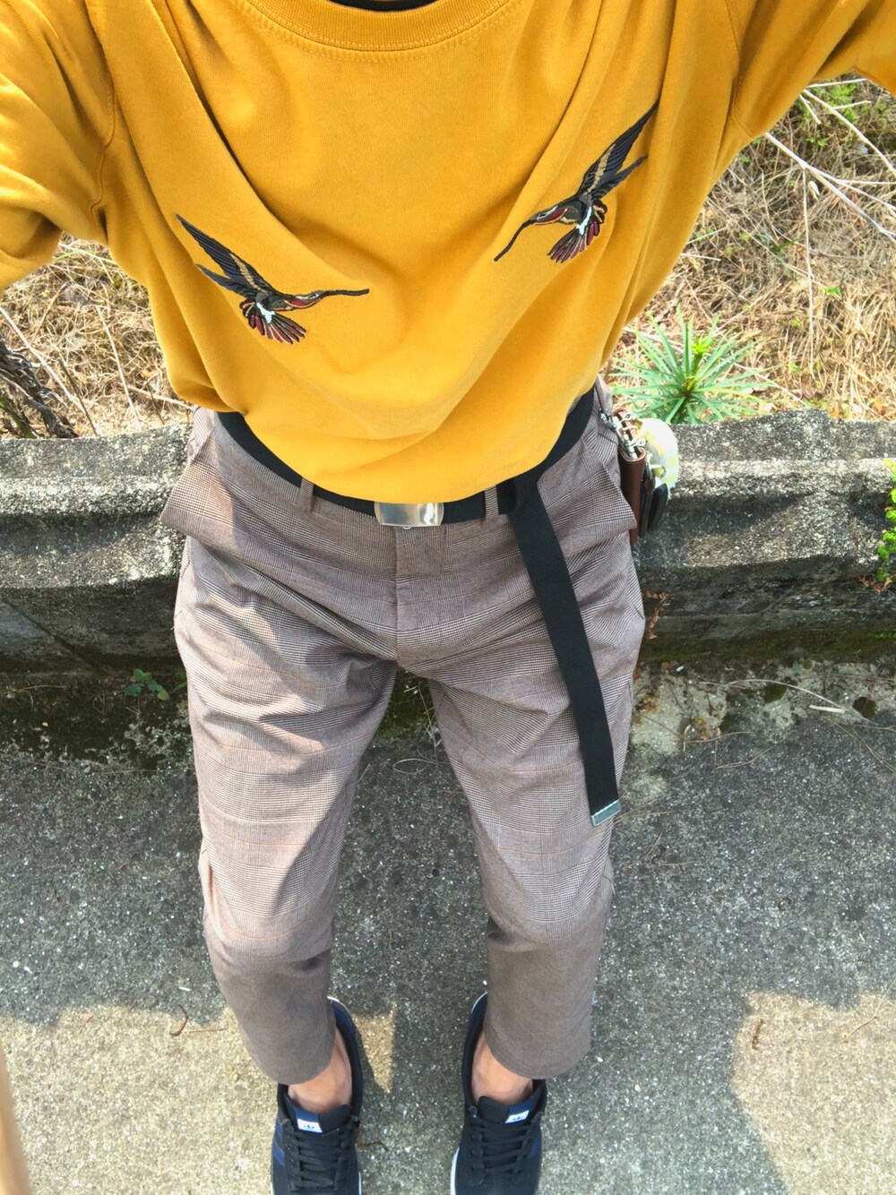 やっときました。 グレンチェックのパンツを使用してみました。 やっぱり、グレンチェックといえばレトロ!! トップスをマスタード色にし、鳥の刺繍を活かしてかわいくしてみました。