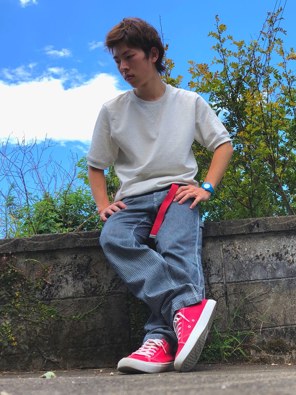 人生初のペインターパンツを主にしてみました。 ずっと合わせにくい…。と思っていましたが、それが合わせやすいんです!!笑 トップスを無地にもってくれば超簡単にできるオシャレコーデ👍 それに、トップスをボーダーにすると派手めな都会感が出るコーデになります。 赤で小物をリンクさせました。