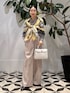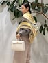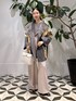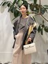 柔らかなグレーを基調にまとめた、品の良さとクラシックなニュアンスのあるスタイリング。 ふんわりと空気を含んだ柔らかなニットは、暖かさと軽さが魅力で、冬のスタイルにやわらかな陰影をつくってくれる一着です。 素材の上質さがさりげなく際立ち、シンプルな合わせでも女性らしい奥行きをプラスしてくれます。 合わせたワイドパンツは、ウールブレンドの生地が立体的なラインを描き、落ち感とハンサムさを両立したシルエットがポイント。 ニットのふわりとした素材感と、パンツの端正なラインが美しく調和し、上品さを保ちながらも肩の力を抜いた雰囲気に。 アウターにはミドルグレーのオーバーサイズコートを。 ボリュームがありつつも構築的な襟元のデザインが顔まわりを引き締め、シンプルなインナーに羽織るだけで洗練されたバランスに仕上がります。 さらに、淡いイエローの大判ストールをラフに肩掛けし、柔らかい色合いの中にほんのりとした彩りを差し込みました。 落ち着いた配色の中に、さりげない華やぎを取り入れました。 冬の素材感を楽しみながら、ニュアンスカラーでまとめたエレガントなデイリースタイル。 上品さと軽やかさが両立し、幅広いシーンで活躍できる大人のための洗練されたコーディネートです。 商品詳細については使用アイテムをご確認ください。