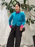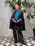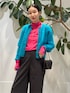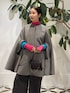コートから覗く鮮やかなピンクとターコイズのレイヤードが目を惹く冬のスタイリング。 発色の美しいタートルニットに、ふわりと毛足のあるカーディガンを重ねて柔らかさと華やかさを添えました。 パンツは細かなチェックが入ったチャコールグレーのワイドシルエット。 落ち着いたトーンがカラーアイテムを品よく受け止め、モードなバランスに仕上がります。 アウターには両面で表情の変わるケープコートを。 シンプルな無地面は色を活かしたい日、ハウンドトゥース面はクラシックに纏いたい日と、気分やシーンに合わせて使える一枚です。 肩のラインを拾わずゆったりと羽織れるため、ボリュームニットの上からもストレスなく合わせられます。 小さめのショルダーバッグとローファーで足元にリズムをつけ、華やかさとキリッとした大人の印象を両立させた冬のスタイルです。 商品詳細については使用アイテムをご確認ください。
