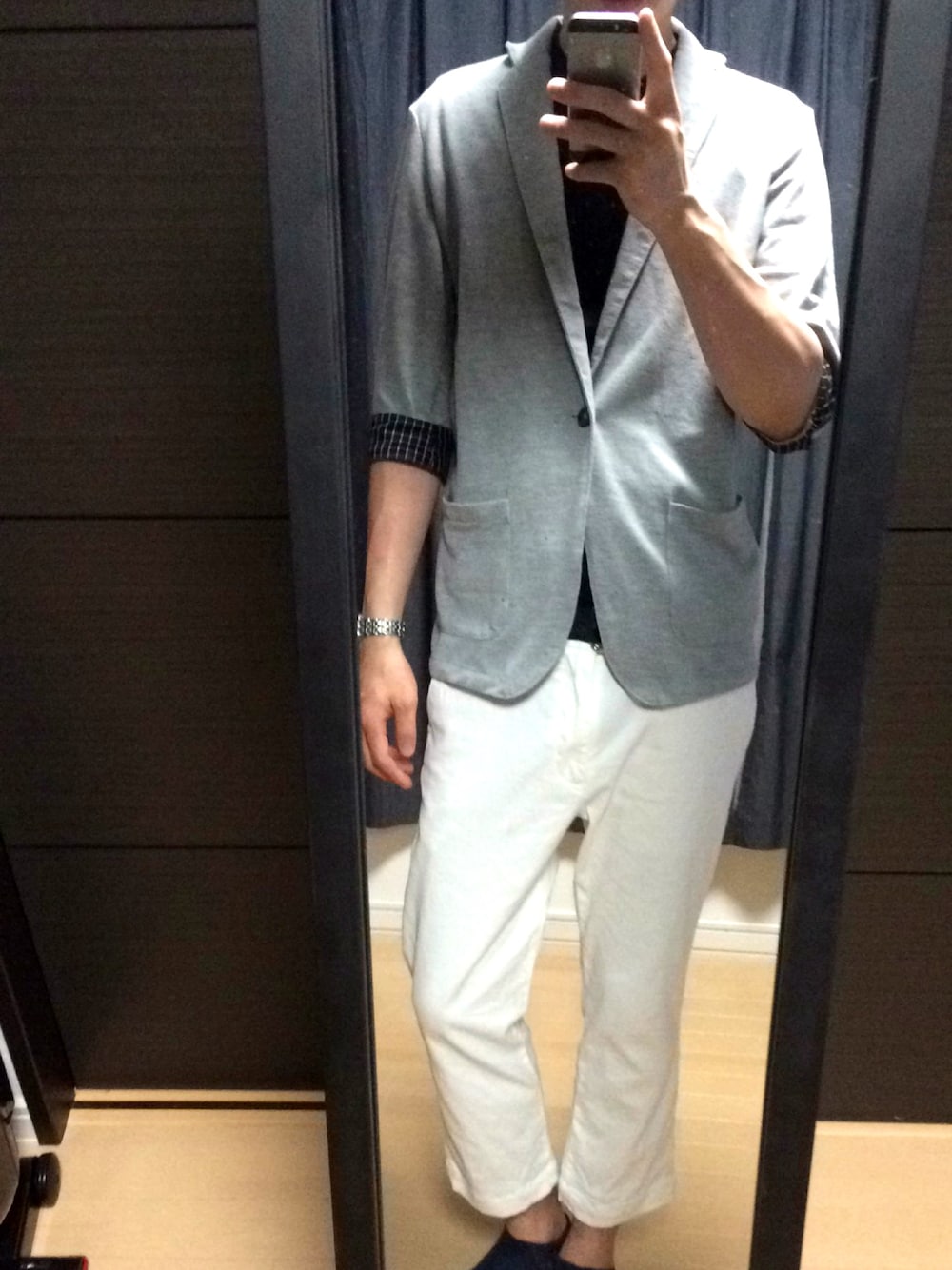 深夜帯の仕事は辛いですね ただ外も若干涼しげなのでジャケット羽織ってみました ジャケット普段着ないから合わせ方がなかなかわからないです、、、