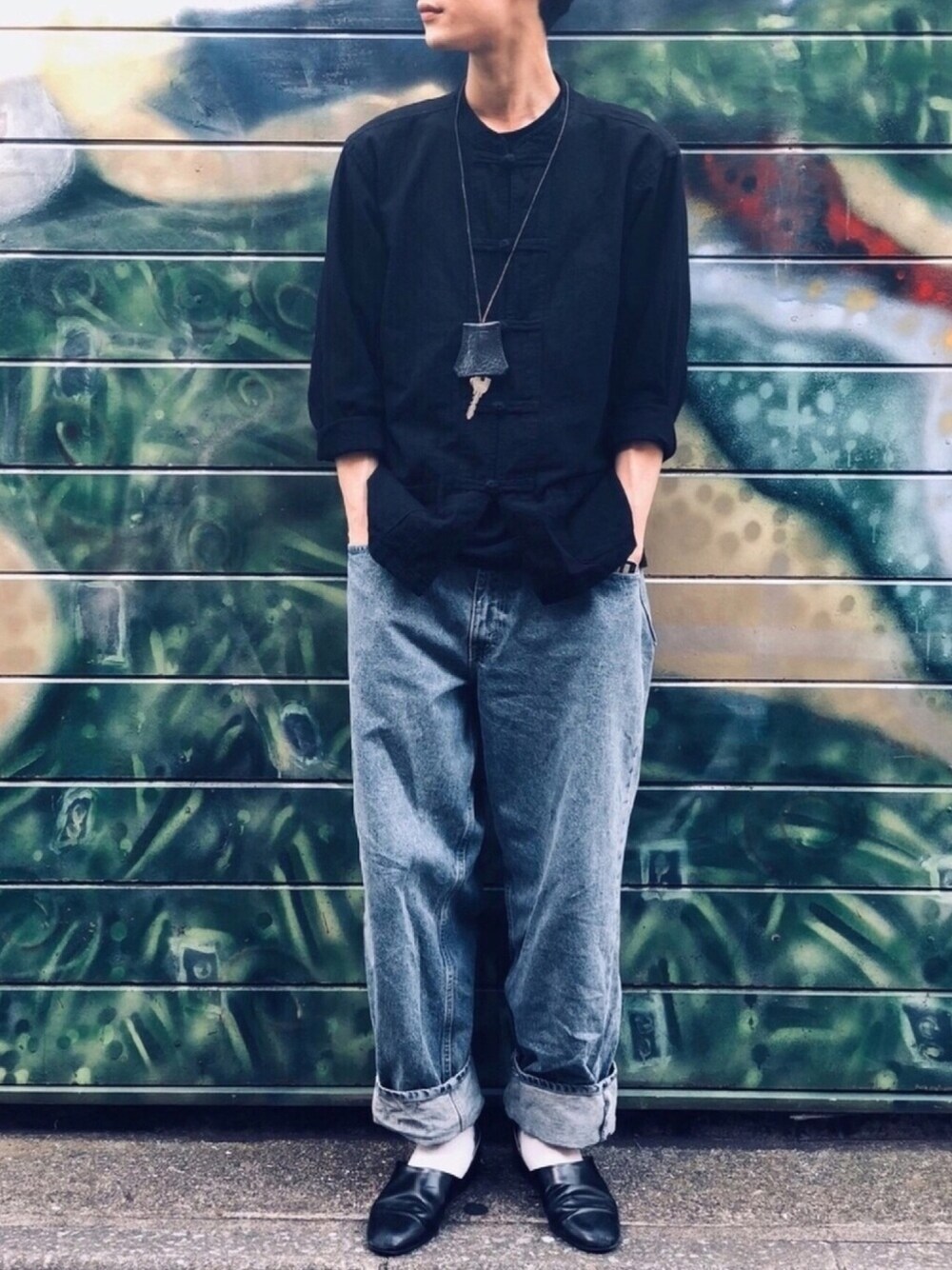 トップスのチャイナシャツは古着となっております。癖がないシンプルなデザインなのでお気に入り😌 リーバイスシルバータグのパンツはバギーシルエットなので、トップスインさせてあげてもかっこいいのでお気に入りです👌